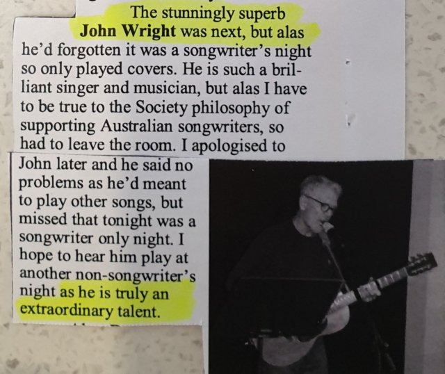 Extract from the Magazine of the Songwriting Society of Australia.